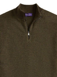 birdseye half-zip pullover Highlights - Olive green - Half-zip fastening - Long sleeves - Birdseye pattern - Ribbed cuffs - Ribbed hem Imported Composition Cashmere 95%, Nylon 3%, Polyurethane 2% Washing instructions Read Manufacturer Guidelines