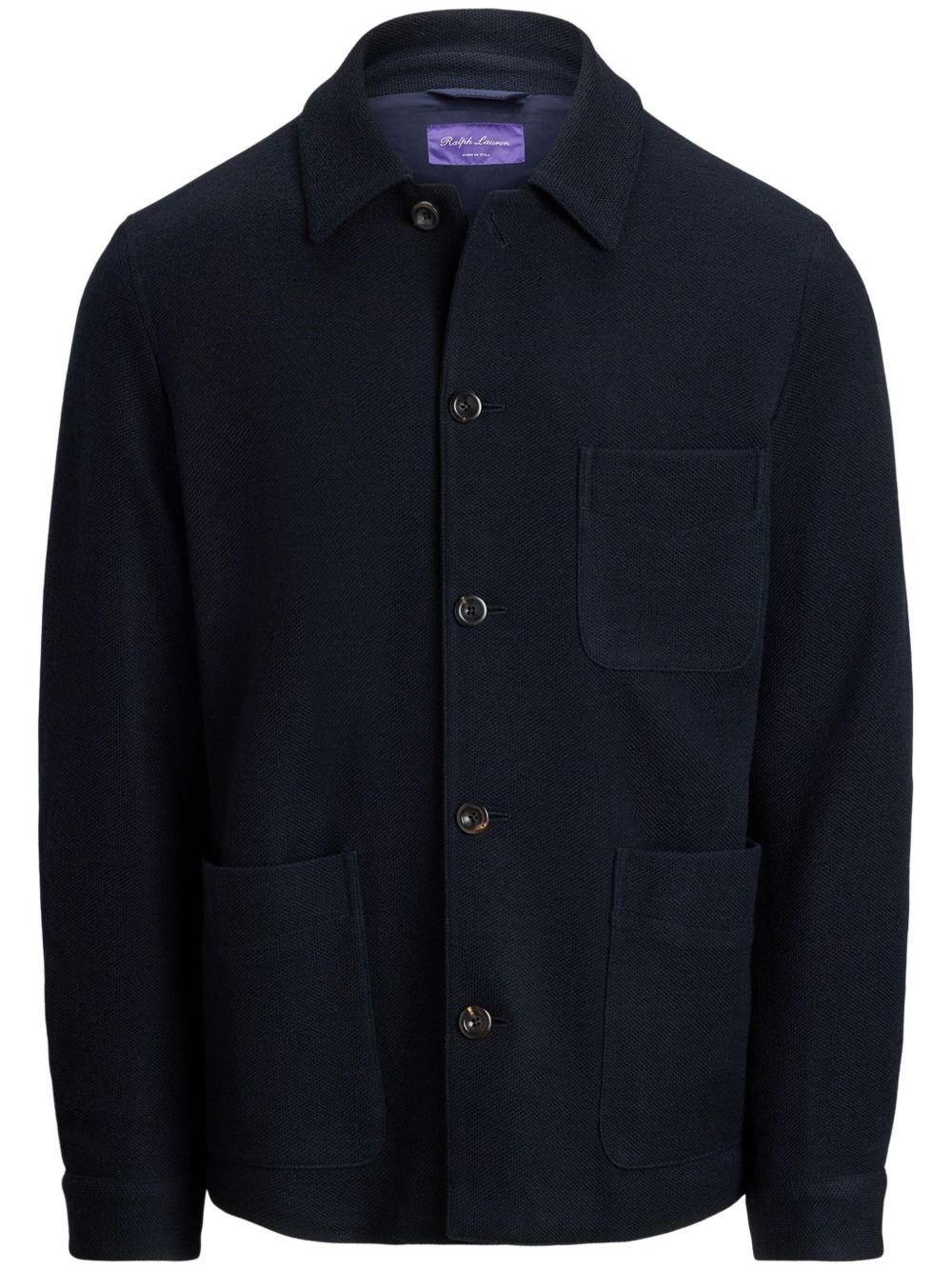 button-down jacket Highlights - Navy blue - Front button fastening - Three front patch pockets - Classic collar - Long sleeves Made in Italy Composition Lining: Cotton 51%, Viscose 49% Outer: Wool 51%, Acrylic 49%