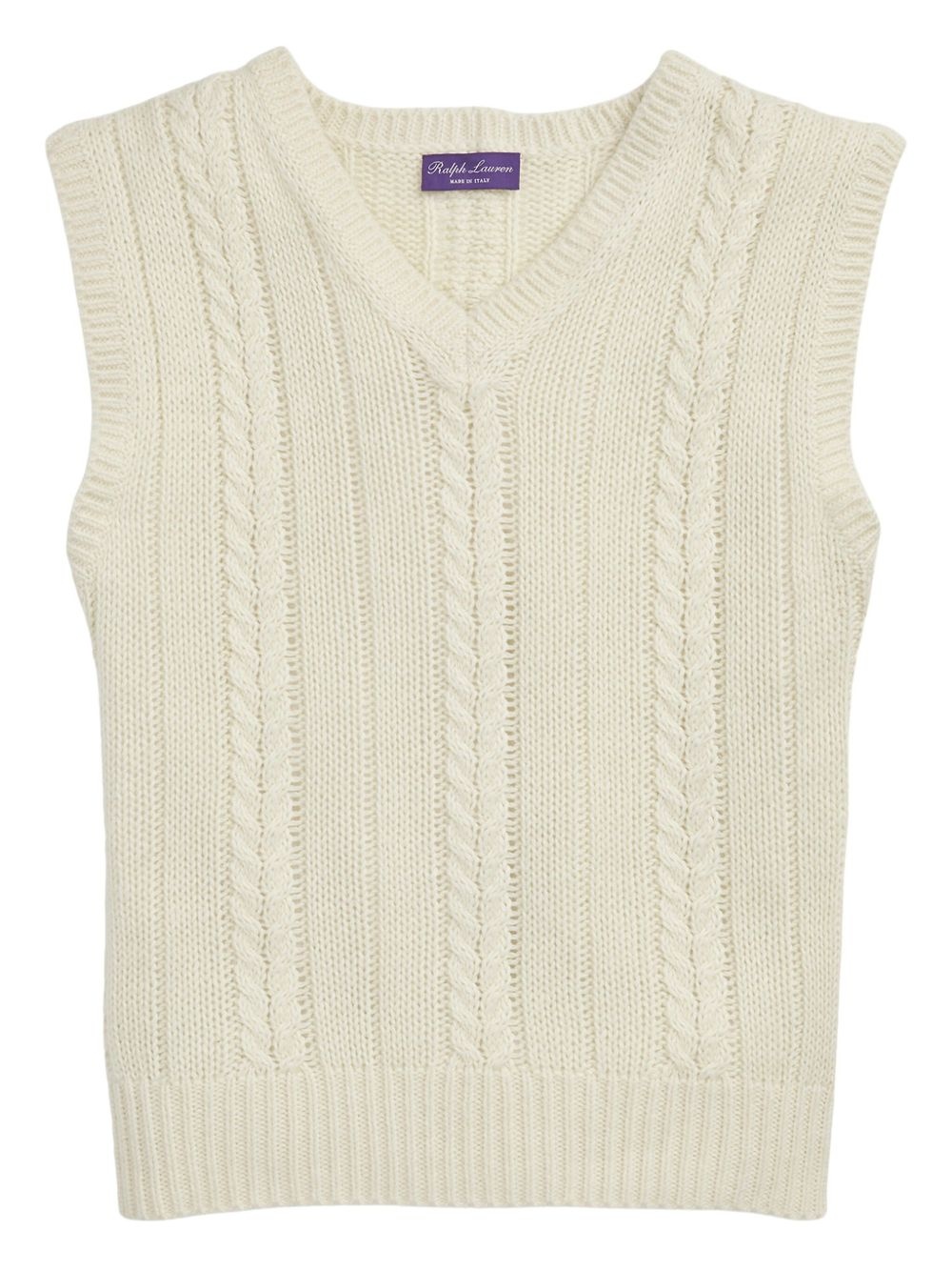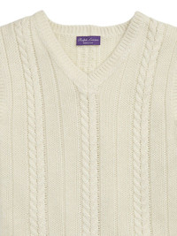cable-knit vest Highlights - Ecru - Ribbed v-neck - Sleeveless - Ribbed hem Made in Italy Composition Cashmere 46%, Tussar Silk 27%, Linen/Flax 27%