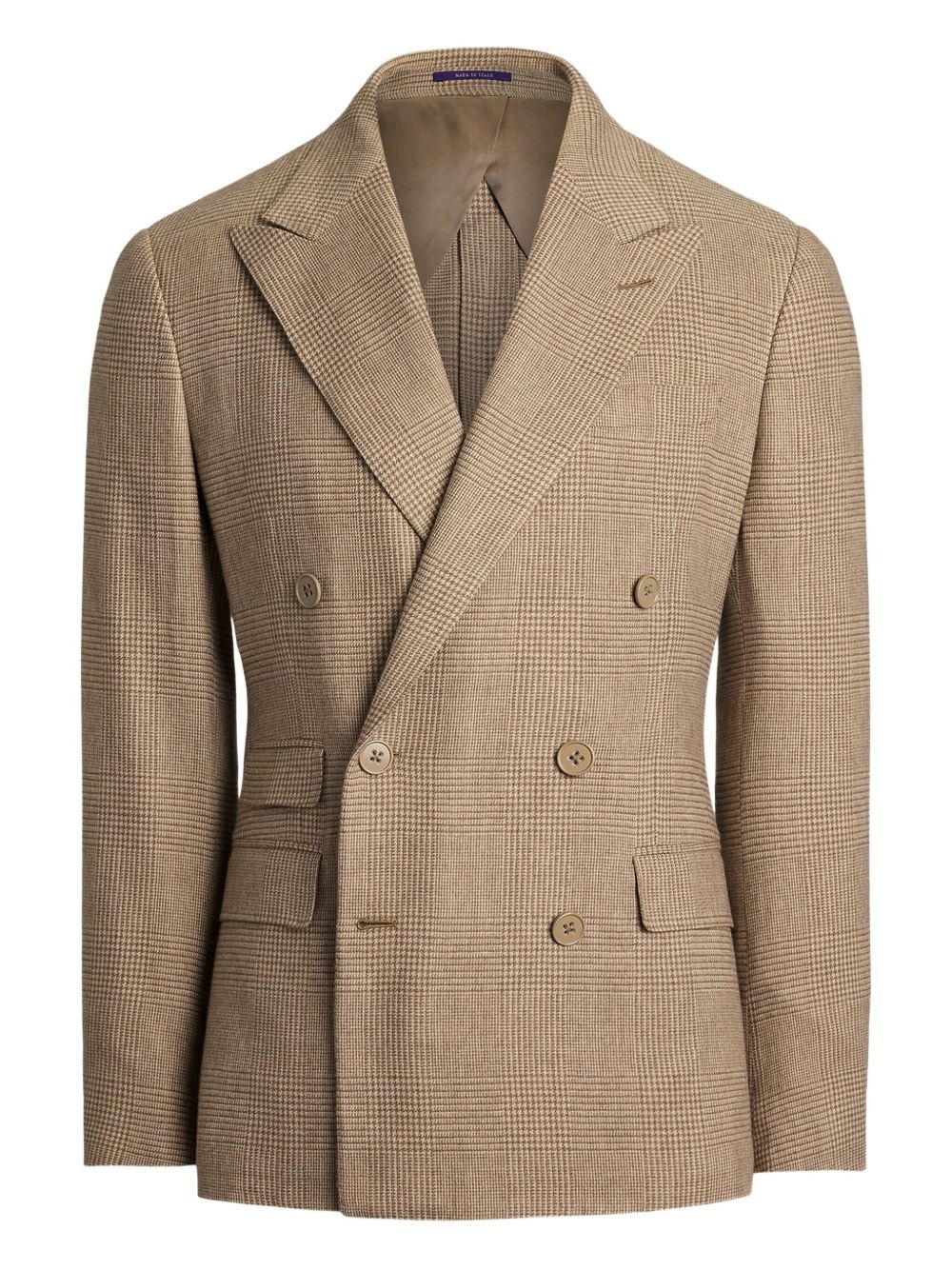 checked double-breasted suit Highlights - Beige - Oversized check pattern - Peak lapels - Double-breasted front - Flap pockets Made in Italy Composition Wool 75%, Mulberry Silk 15%, Cashmere 10% Washing instructions Read Manufacturer Guidelines