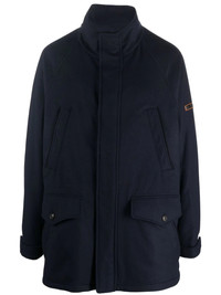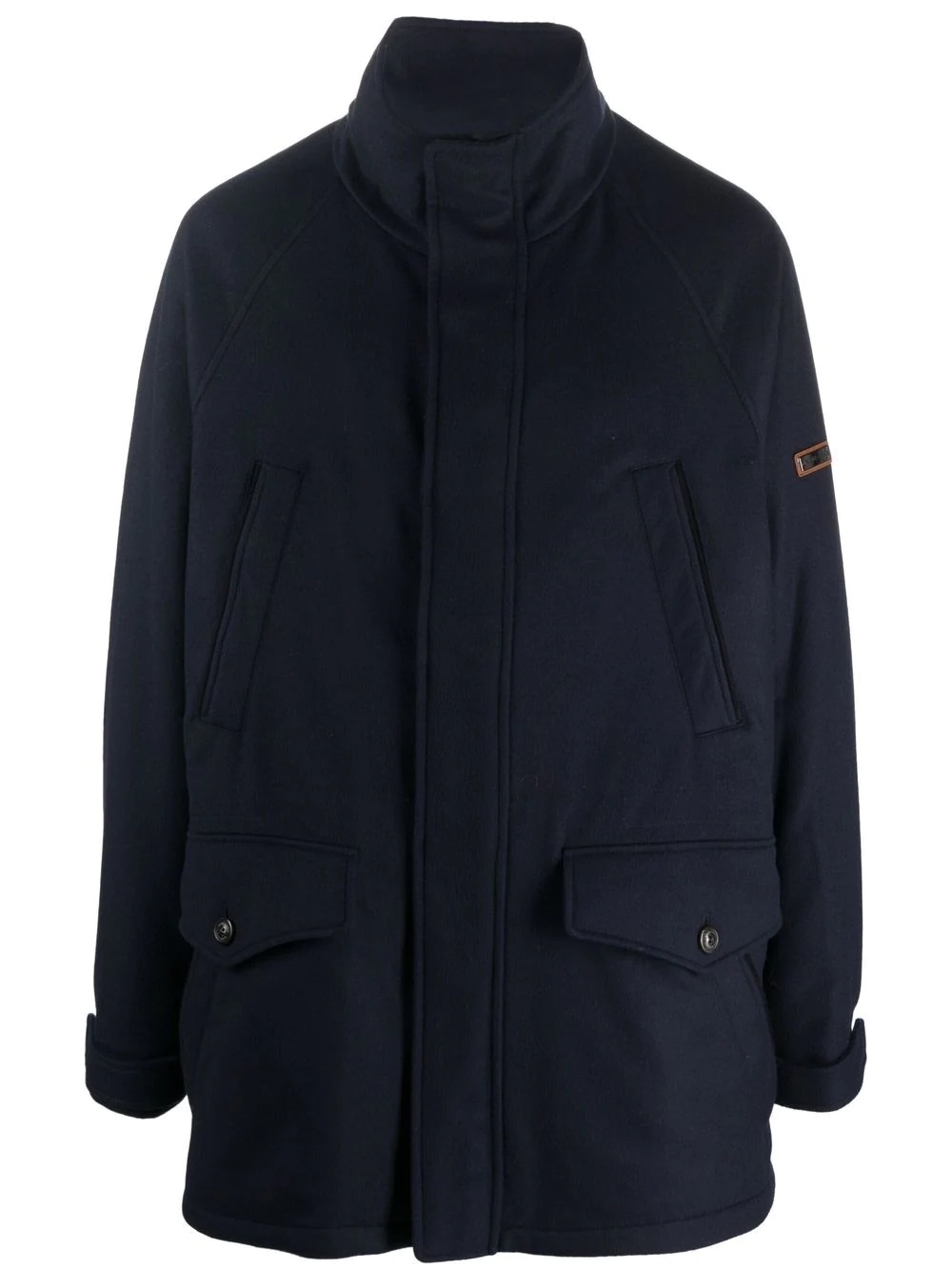 cotton wool blend parka navy blue cotton-wool blend high neck logo patch at the shoulder long sleeves two button-fastening pockets two chest flap pockets touch-strap cuffs concealed front zip fastening button fastening at the shoulder straight hem Imported Composition Outer: Lamb Skin 100%, Wool 75%, Polyamide 25% Lining: Cotton 100%, Polyester 100% SIZE & FIT Model measurements Height 6 ft 2 in(1.88 m) Bust/Chest 36.61 in(93 cm) Hips 35.82 in(91 cm) Waist 27.95 in(71 cm) FittingInformation This piece fits true to size. We recommend you get your regular size Cut for a loose fit Made with a mid-weight non-stretch fabric Washing instructions Dry Clean Only