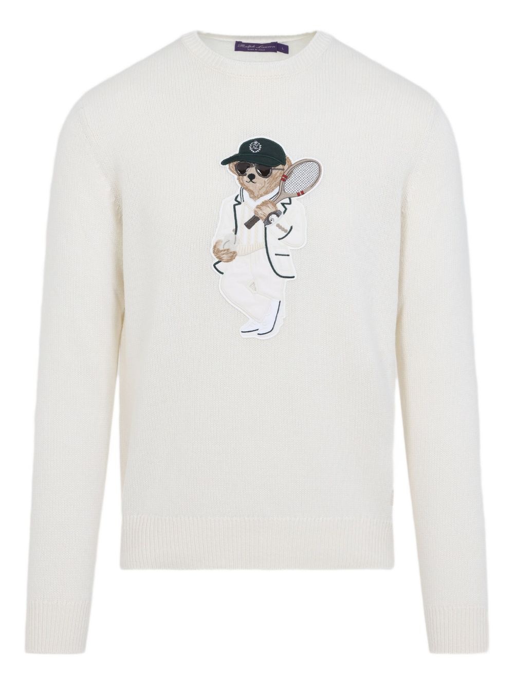 crew neck sweater Highlights - Beige - Embroidered design at the chest - Crew neck - Long sleeves - Ribbed cuffs and hem Made in Italy Composition Cashmere 100%