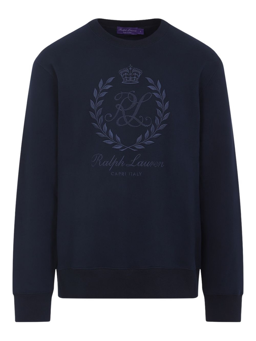 embroidered-logo sweatshirt Highlights - Navy blue - Ribbed cuffs and hem - Crew neck - Long sleeves Imported Composition Cotton 88%, Polyester 12%