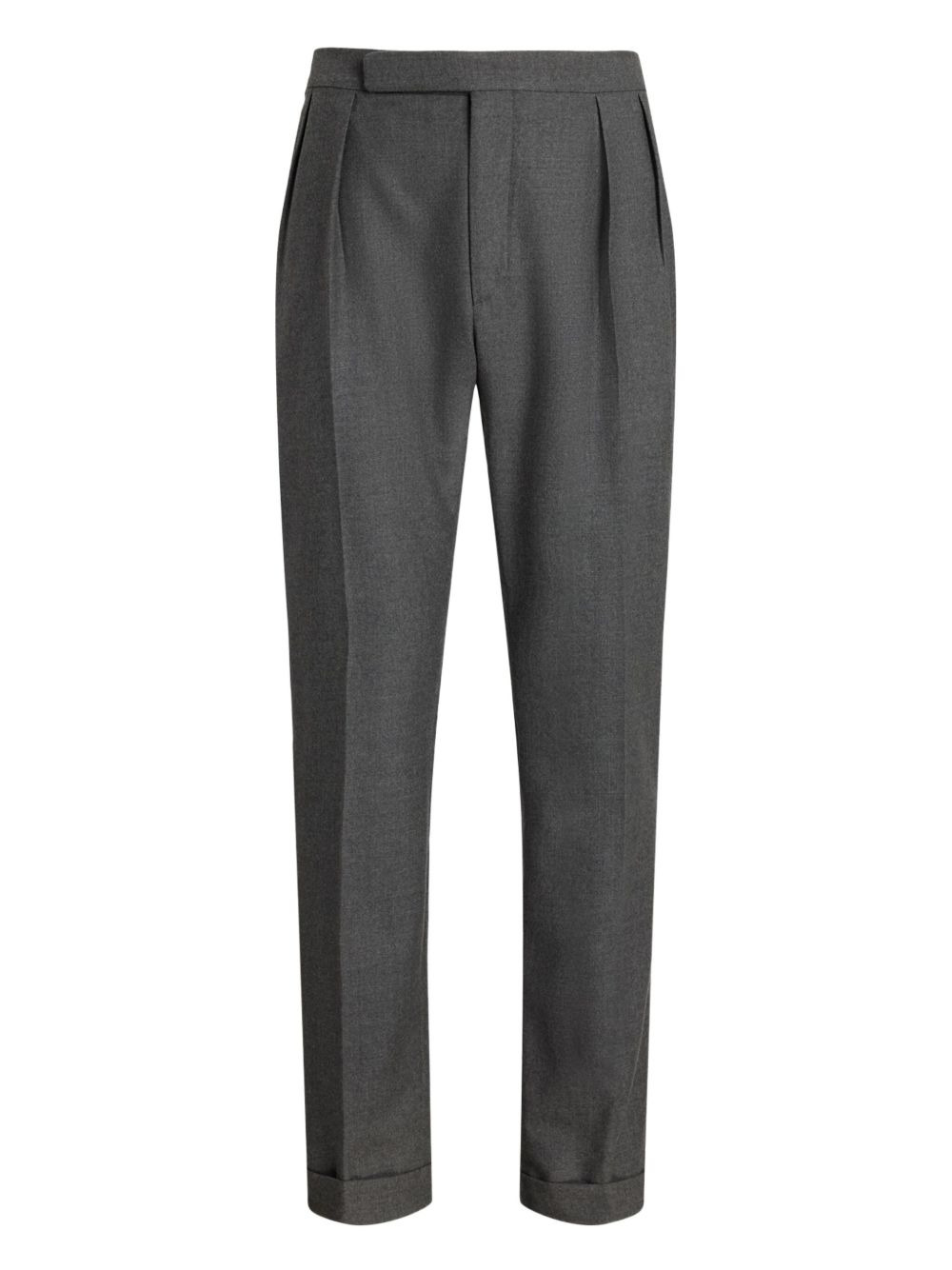 Gregory pleated flannel trousers Highlights - Medium grey - Belt loops - Hook-and-bar closure - Two back pockets - Cuffed hem - Pleated front Made in Italy Composition Outer: Wool 100%, Cattle Horn 100% Lining: Viscose 100% Washing instructions Dry Clean Only