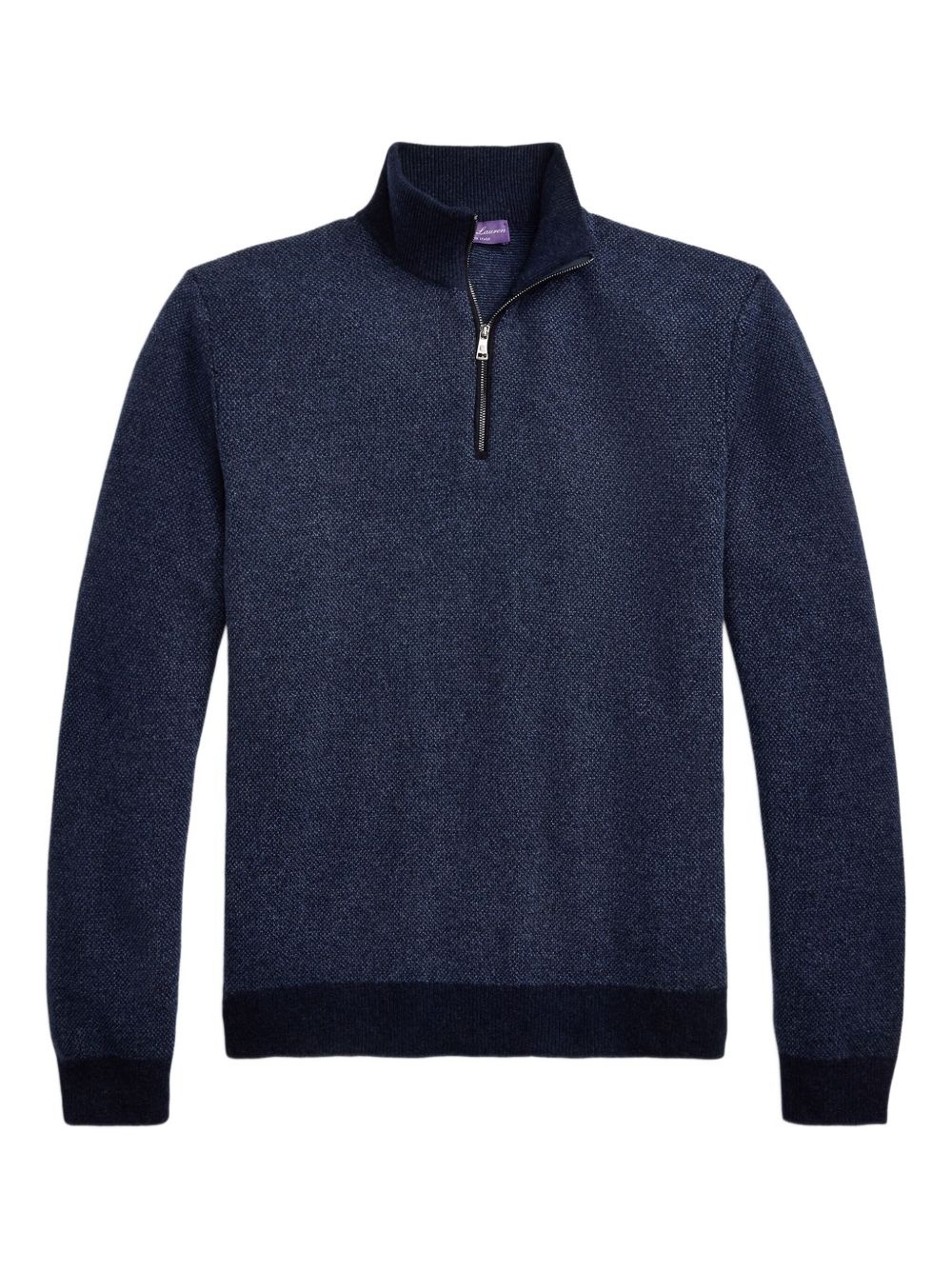 half-zip jumper Highlights - Navy blue - Ribbed cuffs - Half-zip fastening - High neck Made in Italy Composition Cashmere 98%, Nylon 2%