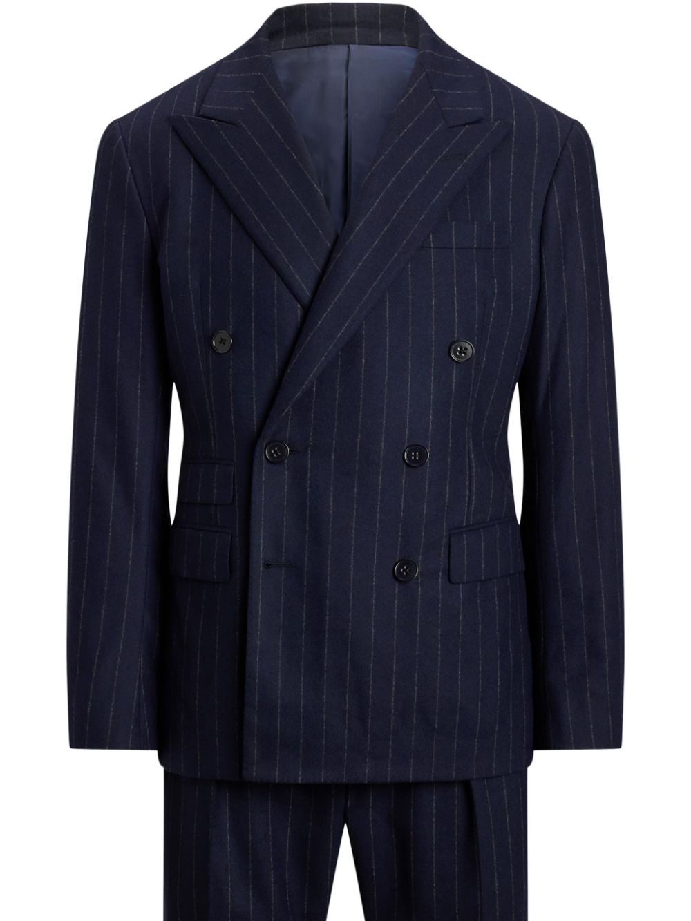 Kent suit Highlights - Navy blue - Double-breasted button fastening - Chest welt pocket - Three side flap pockets - Two rear jetted pockets Made in Italy Composition Lining: Viscose 100%, Cupro 100% Outer: Wool 100%