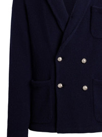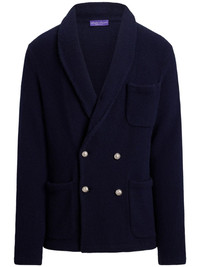Double-Breasted Shawl-Collar Cashmere Cardigan Blue