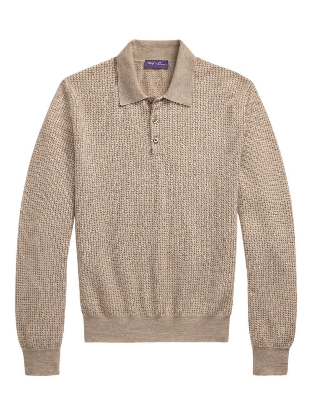 knitted polo shirt Highlights - Beige - Front button placket - Long sleeves - Polo collar - Ribbed cuffs Made in Italy Composition Cashmere 100%