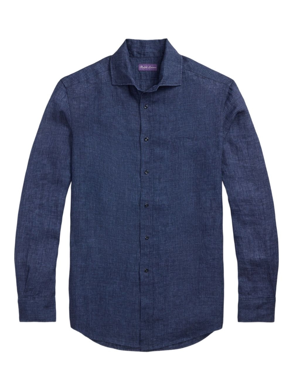 linen long-sleeve shirt Highlights - Dark blue - Button-down front - Long sleeves - Curved hem - Single-button cuffs Imported Composition Linen/Flax 100%