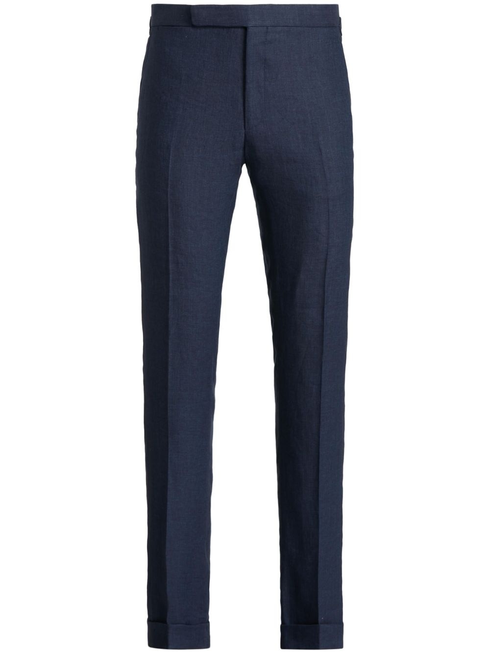 linen trousers Highlights - Navy blue - Concealed front fastening - Adjustable side straps - Two side inset pockets - Two rear button-fastening pockets Made in Italy Composition Linen/Flax 100% Washing instructions Dry Clean Only