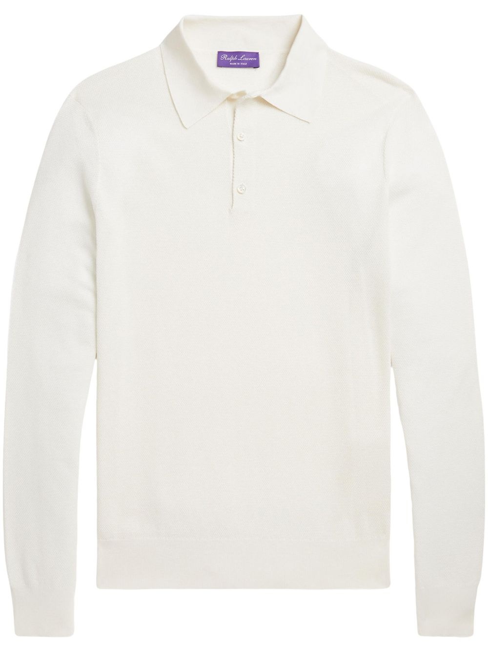 long-sleeve polo shirt Highlights - White - Polo collar - Front button placket - Long sleeves Made in Italy Composition Mulberry Silk 55%, Cotton 45%