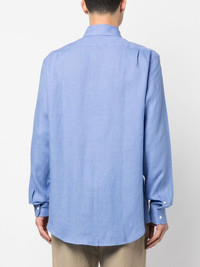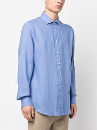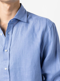 long-sleeved linen shirt Highlights - Sky blue - Linen - Spread collar - Front button fastening - Long sleeves - Buttoned cuffs - Curved hem Imported Composition Linen/Flax 100% SIZE & FIT Model measurements Height 6 ft 1 in(1.85 m) Bust/Chest 35.82 in(91 cm) Hips 37.79 in(96 cm) Waist 29.13 in(74 cm) FittingInformation This piece fits true to size. We recommend you get your regular size Cut for a loose fit Made with a mid-weight non-stretch fabric Washing instructions Machine Wash
