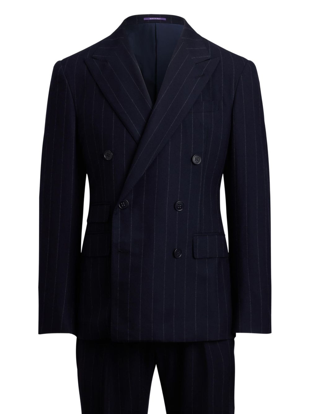 pinstripe double-breasted suit Highlights - Dark navy - Pinstripe pattern - Double-breasted - Notched lapels - Side pockets - Wool fabric Made in Italy Composition Wool 100% Washing instructions Read Manufacturer Guidelines