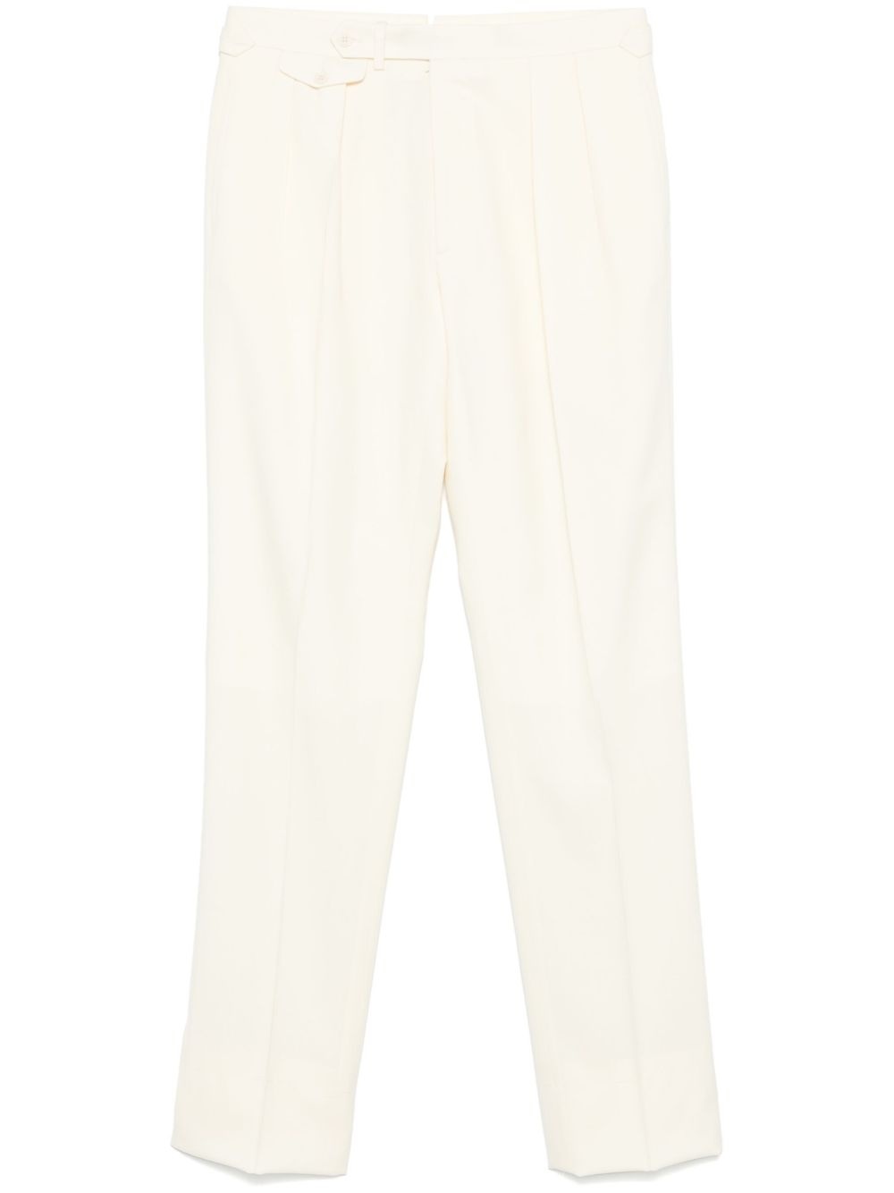 pleated trousers Highlights - Light beige - Front button and zip fastening - Adjustable waist strap - Coin pocket - Two side inset pockets Made in Italy Composition Outer: Wool 100% Lining: Viscose 100% SIZE & FIT Model measurements Height 6 ft 2 in(1.88 m) Bust/Chest 35.43 in(90 cm) Hips 35.03 in(89 cm) Waist 27.95 in(71 cm) FittingInformation Designed for a straight-leg, allowing for an unrestricted and comfortable fit over the leg The adjustable tabs allow for fitted preferences Made from a midweight non-stretch fabric