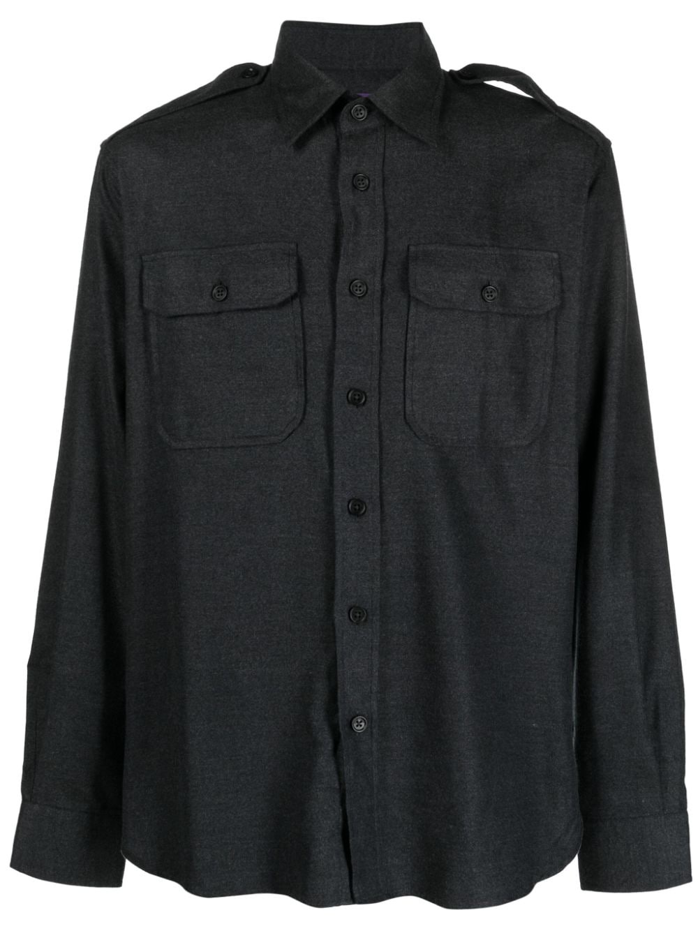 pointed-collar button-up cotton blend shirt Highlights - Charcoal grey - Cotton-lyocell blend - Pointed flat collar - Front button fastening - Button fastening at the shoulder - Long sleeves - Buttoned cuffs - Two button-fastening chest pockets - Straight hem Made in Italy Composition Cotton 59%, Lyocell 41% SIZE & FIT Model measurements Height 6 ft 2 in(1.89 m) Bust/Chest 37.79 in(96 cm) Hips 37 in(94 cm) Waist 29.92 in(76 cm) FittingInformation Designed for a regular fit, allowing for a comfortably loose fit throughout the body Made from a midweight non-stretch fabric This piece fits true to size – take your usual size Washing instructions Dry Clean Only