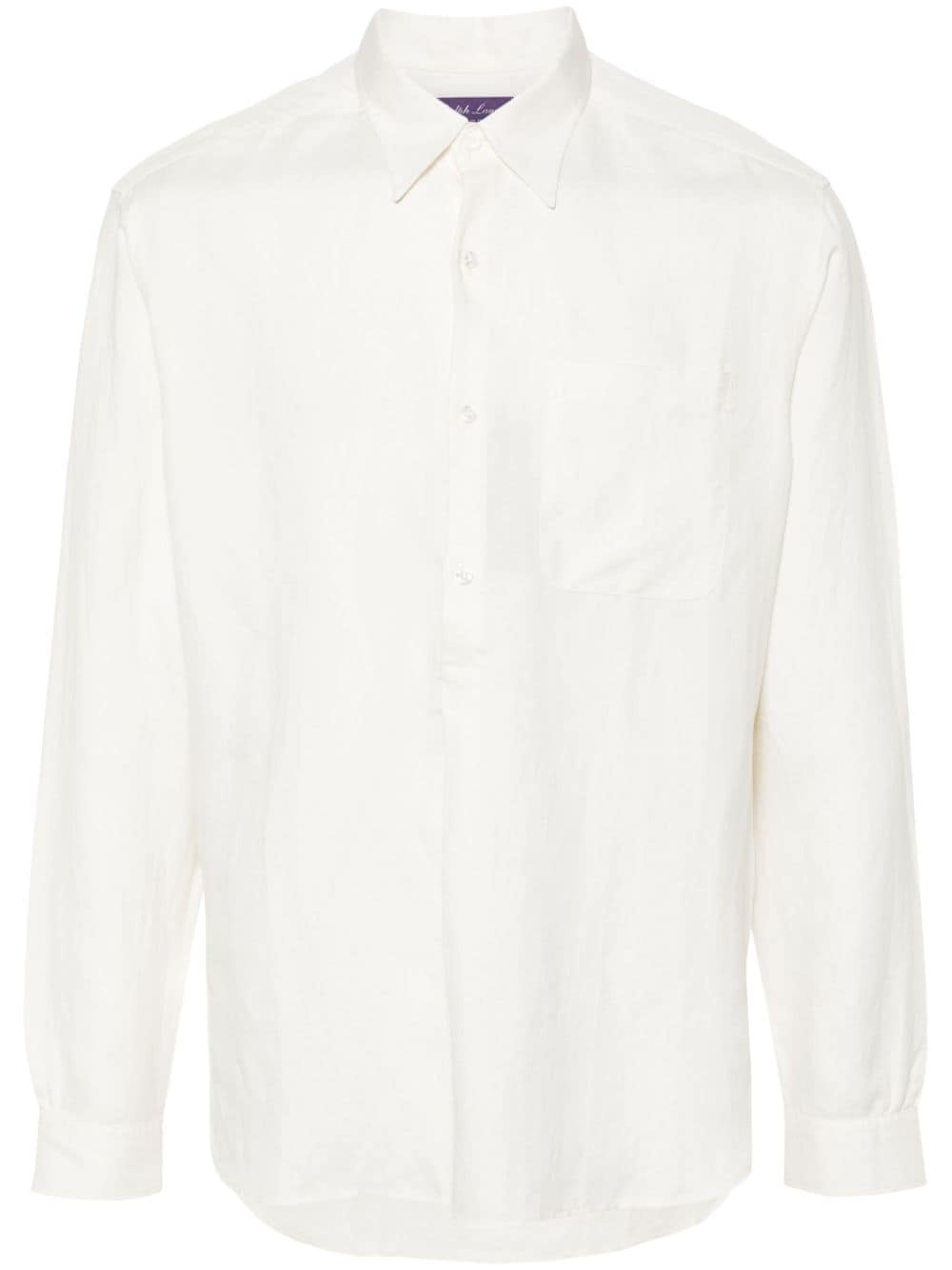 poplin silk-blend shirt Highlights - Cream white - Silk-linen blend - Poplin texture - Logo-engraved buttons - Gathered detailing - Straight-point collar - Long sleeves - Buttoned cuffs - Chest patch pocket - Curved hem - Unlined - Short front button fastening Made in Italy Composition Silk 51%, Linen/Flax 49% SIZE & FIT Model measurements Height 6 ft 2 in(1.87 m) Bust/Chest 37.79 in(96 cm) Hips 37.79 in(96 cm) Waist 30.31 in(77 cm) FittingInformation Designed for a regular fit, allowing for a comfortably loose fit throughout the body Made from a midweight non-stretch fabric This piece fits true to size – take your usual size