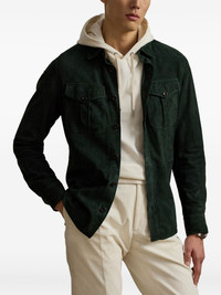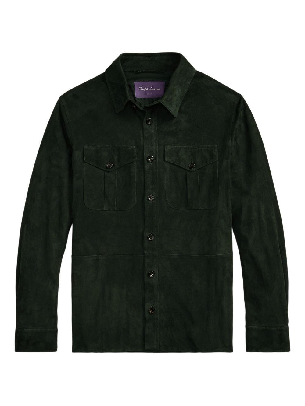 suede shirt jacket Highlights - Dark green - Button-up front - Two chest flap pockets - Long sleeves - Adjustable cuffs Imported Composition Suede 100% Washing instructions Read Manufacturer Guidelines