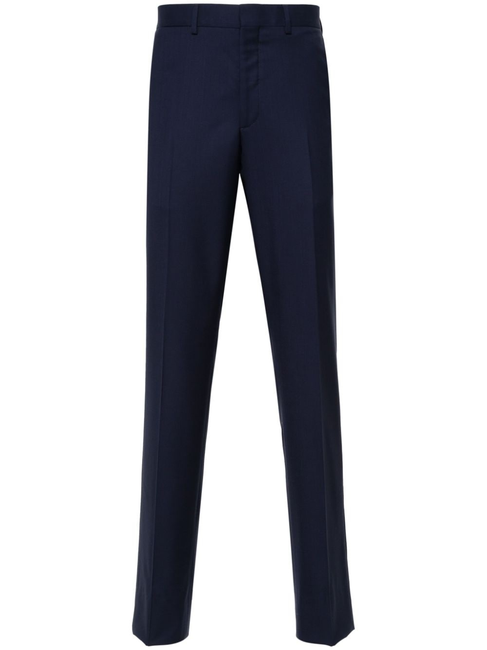 tapered wool chino trousers Highlights - Cobalt blue - Wool - Tailored cut - Tapered leg - Belt loops - Pressed crease - Two diagonal pockets to the sides - Rear button-fastening jetted pocket - Concealed front button, hook and zip fastening Made in Italy Composition Lining: Viscose 100% Outer: Wool 100% SIZE & FIT Model measurements Height 6 ft 2 in(1.87 m) Bust/Chest 37 in(94 cm) Hips 33.85 in(86 cm) Waist 27.95 in(71 cm) FittingInformation Designed for a slim tapered leg, offering a close fit that sits just away from the leg with a closer fit towards the ankle The unfinished hems allow for the length to be altered Made from a midweight non-stretch fabric This piece fits true to size – take your usual size Washing instructions Dry Clean Only