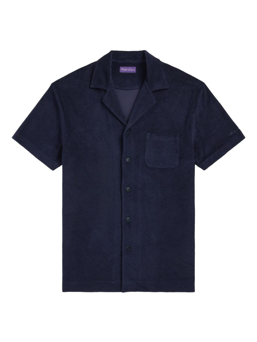 terry-cloth shirt Highlights - Navy blue - Front button fastening - Chest patch pocket - Embroidered logo at the sleeve - Notched collar Imported Composition Cotton 64%, Modal 36%