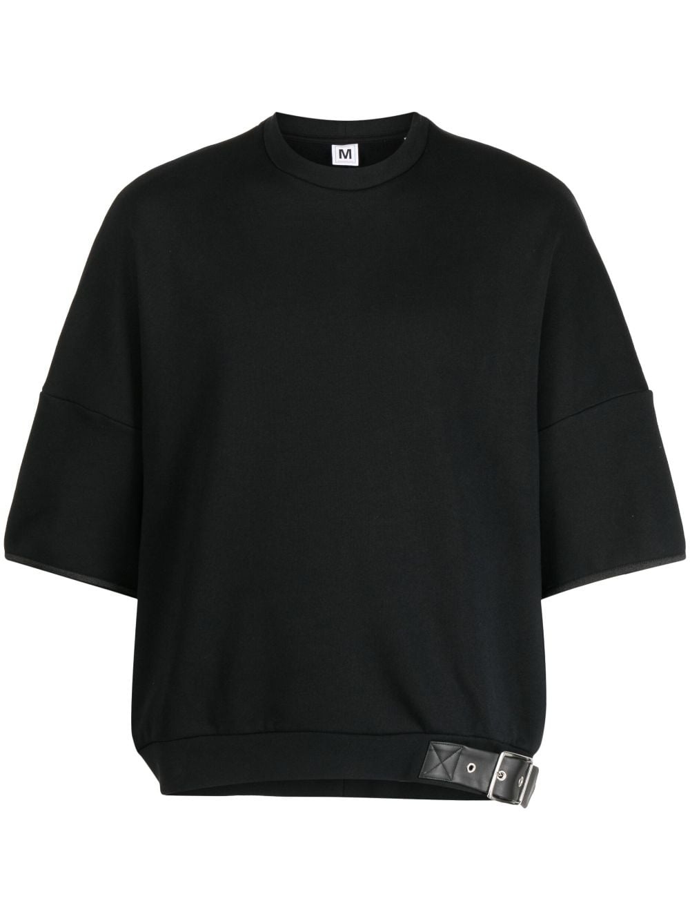 buckle-detailed cotton T-shirt Highlights - Black - Cotton - Decorative buckle detail - Round neck - Short sleeves - Straight arms Imported Composition Cotton 100% SIZE & FIT Model measurements Height 6 ft 2 in(1.87 m) Bust/Chest 36.22 in(92 cm) Hips 37.79 in(96 cm) Waist 28.34 in(72 cm) FittingInformation Designed to be unstructured, offering a loose fit throughout Made from a midweight non-stretch fabric, this piece offers minimal elasticity when worn This piece fits true to size – take your usual size Washing instructions Machine Wash