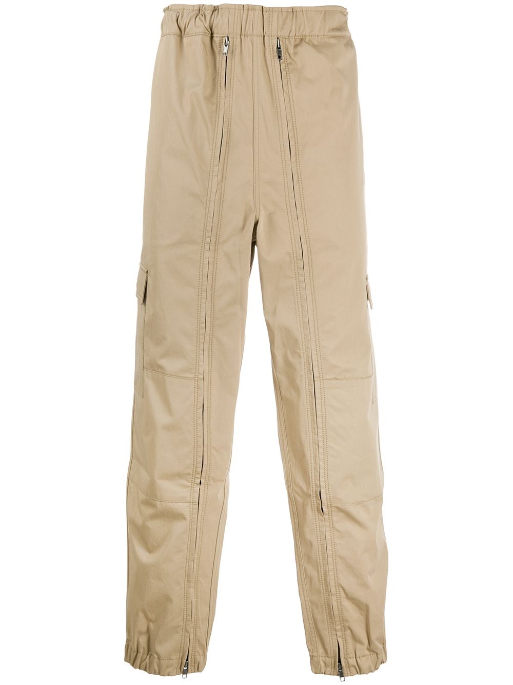 full zip multi-pocket cargo trousers Beige cotton full zip multi-pocket cargo trousers from Random Identities featuring a textured style, a wide leg, a regular length, an elasticated waistband, a zip fastening and four side pockets. Made in Italy Composition Cotton 100% SIZE & FIT Model measurements Height 6 ft 2 in(1.87 m) Bust/Chest 36.41 in(92.5 cm) Hips 37 in(94 cm) Waist 29.52 in(75 cm) Washing instructions Machine Wash