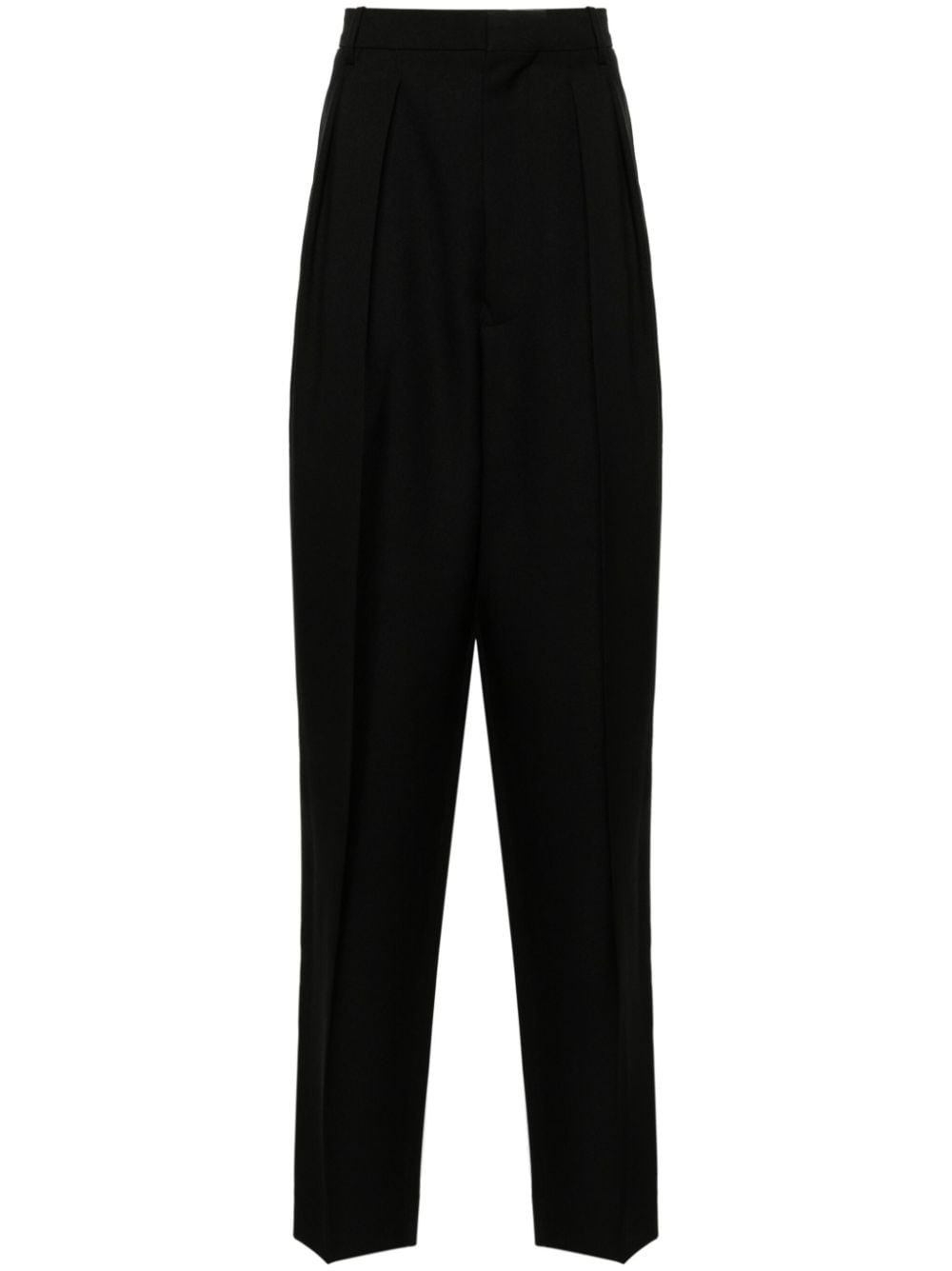 pleated tailored trousers Highlights - Black - Twill weave - Pleat detailing - Mid-rise - Concealed front button, hook and zip fastening - Belt loops - Two side slash pockets - Two rear jetted pockets - Pressed crease - Tapered leg Imported Composition Polyester 100% SIZE & FIT Model measurements Height 6 ft 2 in(1.87 m) Bust/Chest 36.22 in(92 cm) Hips 37 in(94 cm) Waist 27.95 in(71 cm) FittingInformation Designed for a tapered leg, offering a loose unrestricted fit over the leg with a closer fit towards the ankle Made from a midweight non-stretch fabric This piece fits true to size – take your usual size