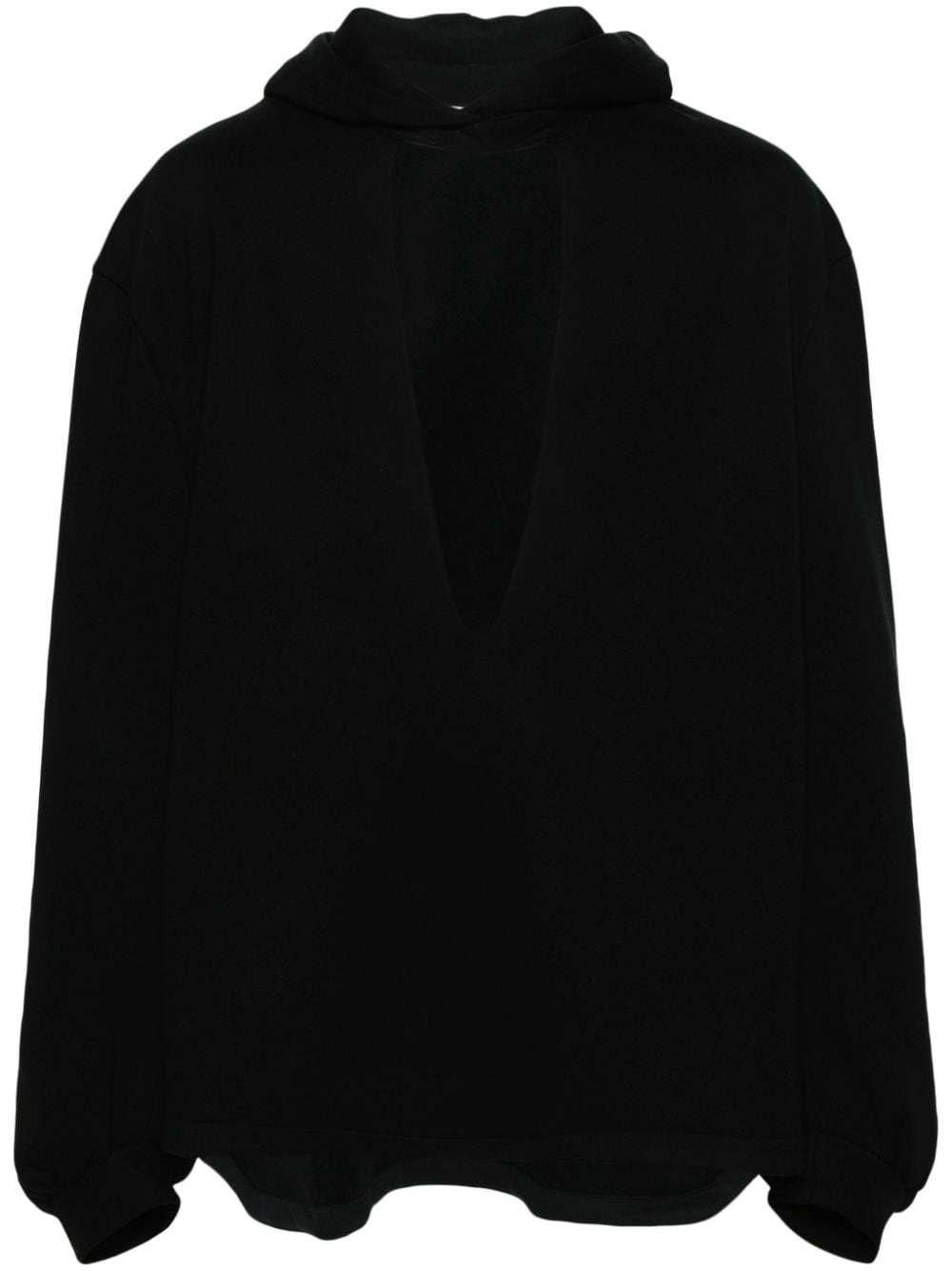 plunge-V cotton hoodie Highlights - Black - Cotton - Cut-out detailing - Plunging v-neck - Classic hood - Extra-long sleeves - Straight hem - When buying this unisex item, keep in mind that it is graded in standard men's sizing. Imported Composition Cotton 100% SIZE & FIT Model measurements Height 5 ft 11 in(1.8 m) Bust/Chest 31.49 in(80 cm) Hips 36.61 in(93 cm) Waist 24.4 in(62 cm) FittingInformation This unisex piece is designed for an oversized fit whether you usually select women's or men's sizes Constructed with additional length on the sleeve Made from a midweight non-stretch fabric, this piece offers minimal elasticity when worn Washing instructions Machine Wash