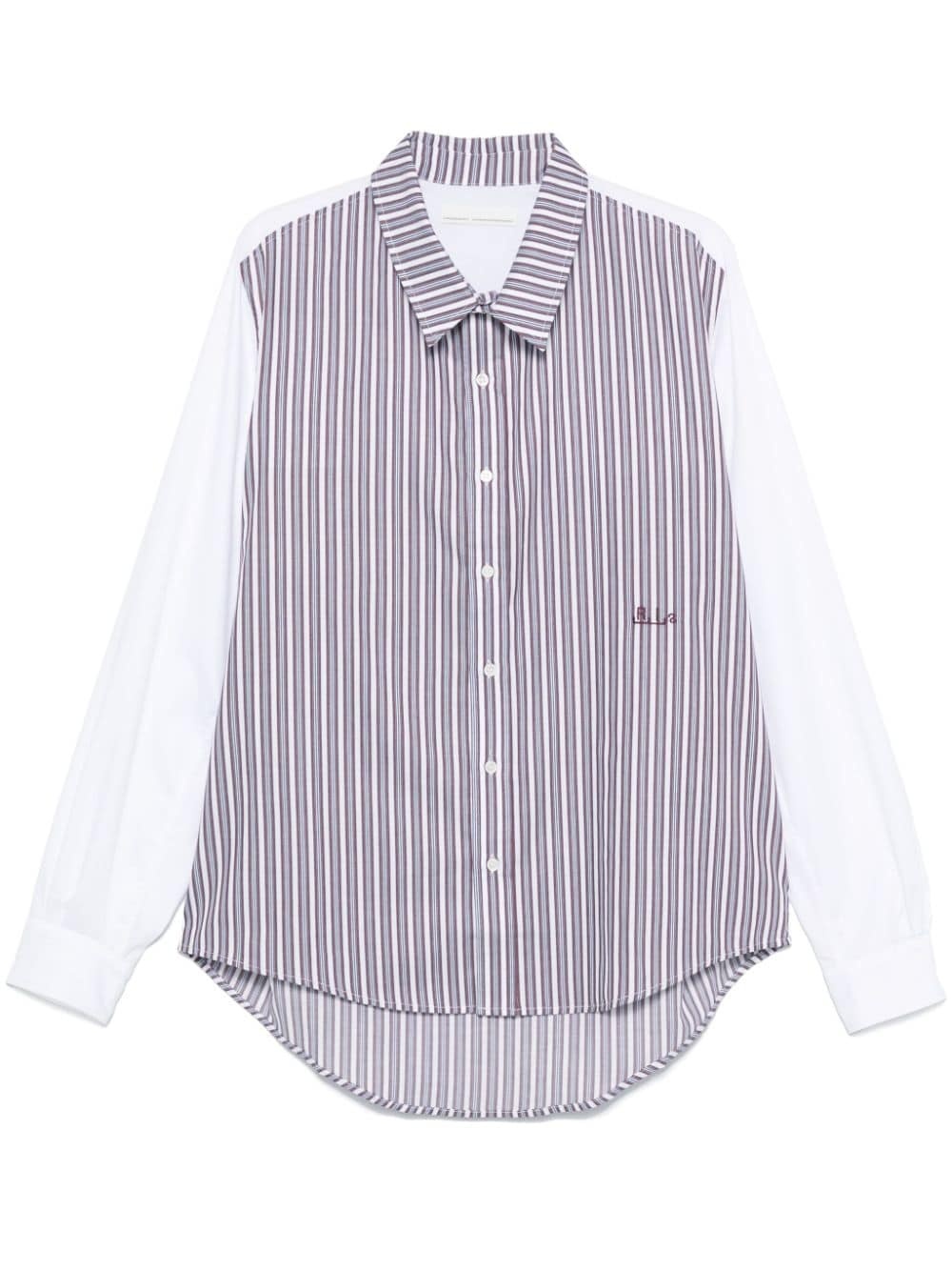 striped shirt Highlights - Red/white/blue - Cotton - Textured finish - Vertical stripe pattern - Front button fastening - Classic collar - Contrasting panel detail - Long sleeves - Buttoned cuffs - Embroidered logo to the side - Curved hem Imported Composition Cotton 100%