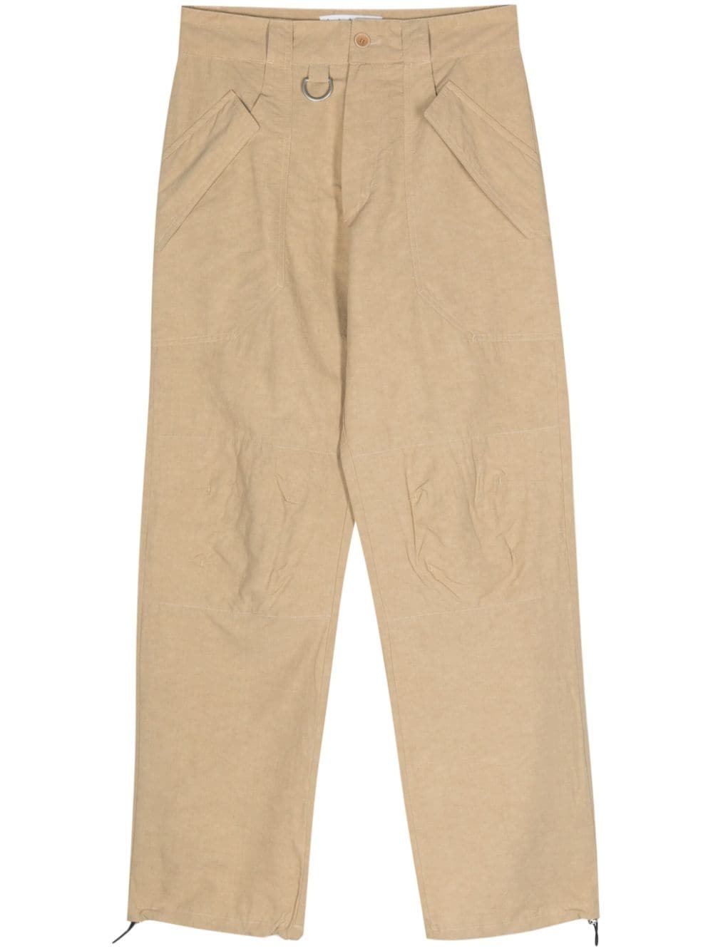 slub-texture straight trousers Highlights - Ecru - Slub texture - Belt loops - D-ring findings - Two side flap pockets - Two diagonal pockets to the sides - Dart detailing - Two rear flap pockets - Drawstring ankles - Straight leg - Concealed fly and button fastening Made in Italy Composition Cotton 44%, Linen/Flax 30%, Viscose 26%