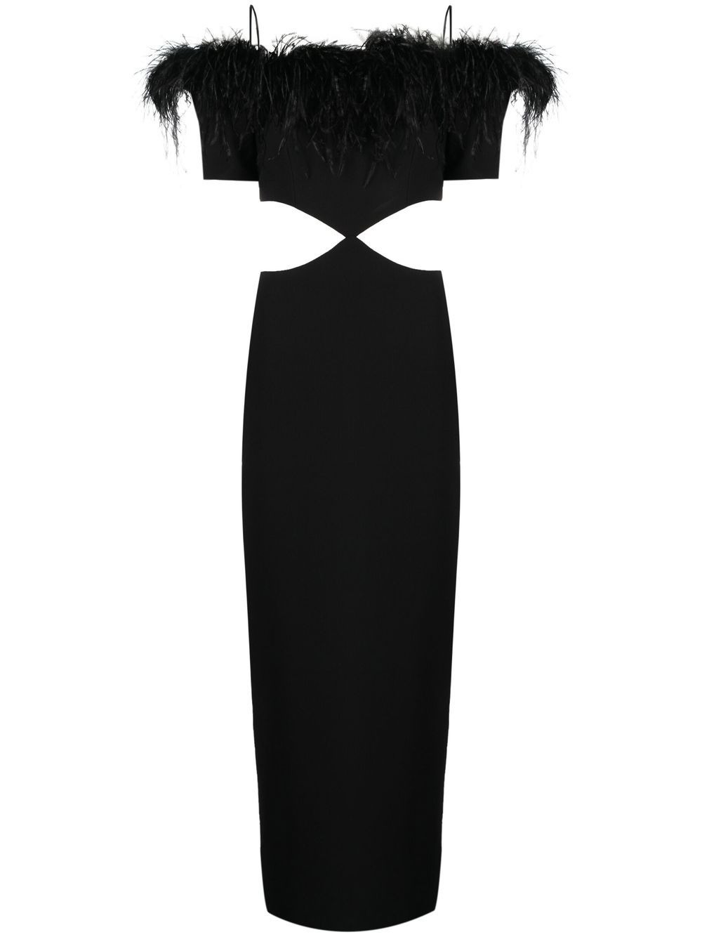 feather-trim off-shoulder dress Inspired by silhouettes and the use of fine materials, these influences can be seen on this off-shoulder dress from RASARIO's AW22 collection. Featuring feather trim and cut-out detailing, the brand's signature elegant design style is reiterated. Imported Composition Lining: Polyester 98%, Elastane 2% Outer: Polyester 97%, Elastane 3% SIZE & FIT Model measurements Height 5 ft 9 in(1.76 m) Bust/Chest 33.07 in(84 cm) Hips 34.64 in(88 cm) Waist 25.59 in(65 cm) Measurement HIPS 37.4 in(95 cm) LENGTH 55.9 in(142 cm) WAIST 26.37 in(67 cm) FittingInformation This piece fits true to size. We recommend you get your regular size Cut for a slim fit Made with a mid-weight stretch fabric Washing instructions Dry Clean Only