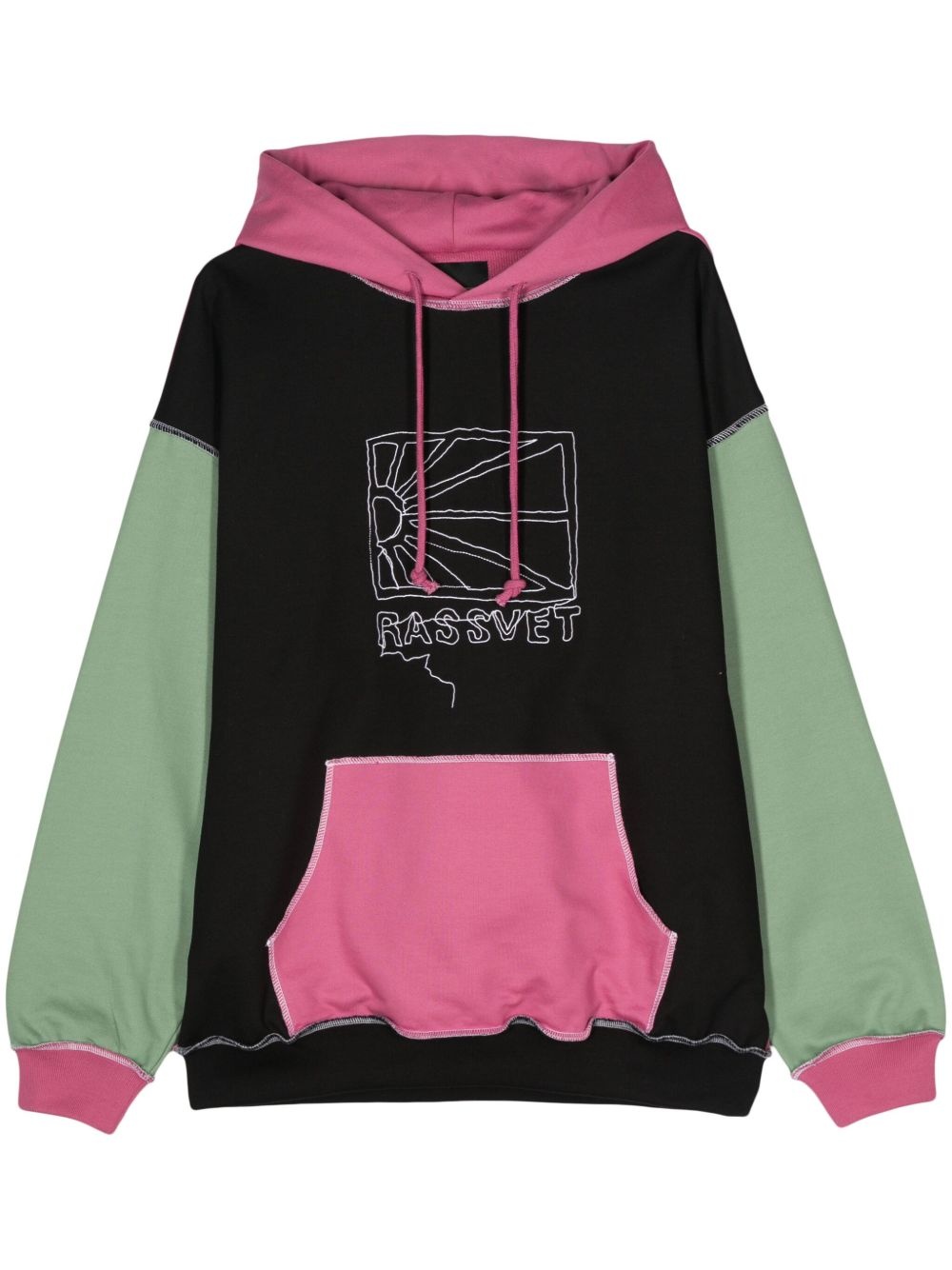 logo-embroidered cotton hoodie Highlights - Black/pink/green - Cotton - Jersey texture - Seam detailing - Embroidered logo to the front - Slouchy drawstring hood - Drop shoulder - Long sleeves - Ribbed cuffs and hem - Front pouch pocket - Straight hem Imported Composition Cotton 100% SIZE & FIT FittingInformation Designed to be unstructured, offering a loose fit throughout Made from a midweight non-stretch fabric, this piece offers minimal elasticity when worn This piece fits true to size – take your usual size