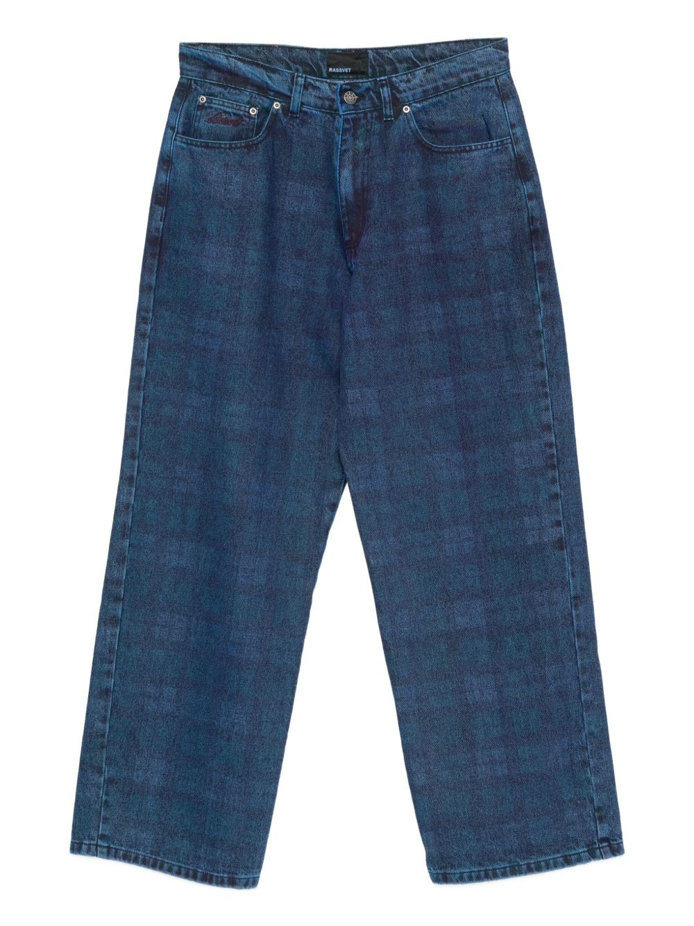 plaid-print jeans Highlights - Dark blue - Plaid pattern - Button and zip fastening - Five pockets - Straight leg Imported Composition Cotton 100% Washing instructions Machine Wash