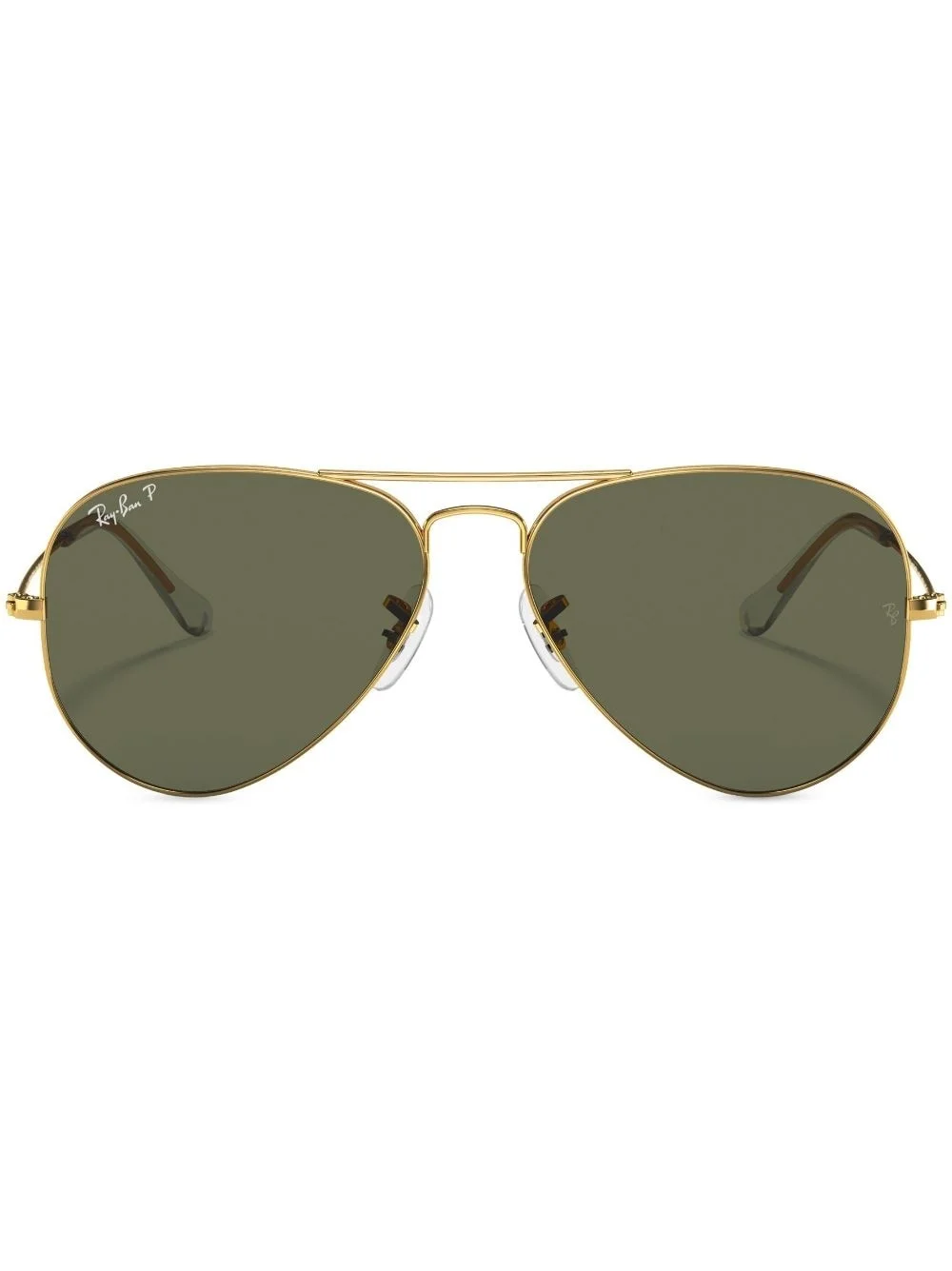 Aviator Classic sunglasses Highlights - Gold-tone - Metal - Engraved logo - Signature ray-ban aviator frame - Tinted lenses - Uv-protective lenses - Nose pads - Straight arms - Curved tips - These glasses come with a protective case. Made in Italy Composition Metal 100% SIZE & FIT Measurement Bridge Width 0.55 in(1.4 cm) Lens Diameter 2.28 in(5.8 cm) Arm Length 5.31 in(13.5 cm)