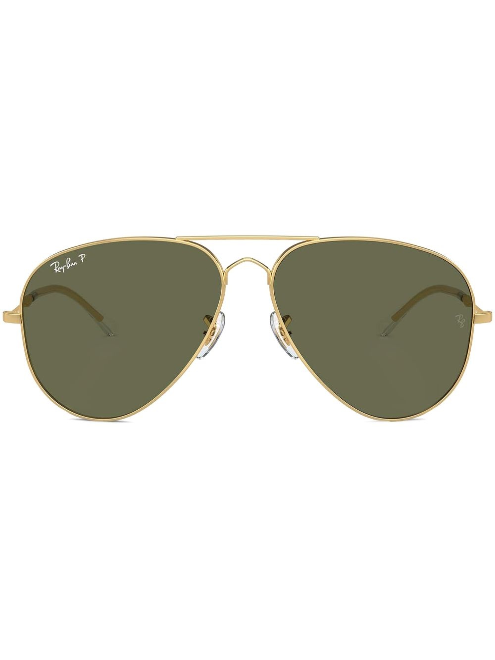 Classic Aviator-frame sunglasses Highlights - Gold-tone - Acetate - Signature ray-ban aviator frame - Logo print to the front - Grey tinted lenses - Sculpted arms - Curved tips - Uv-protective lenses - These glasses come with a protective case. Made in Italy Composition Acetate 100%, Metal 100% SIZE & FIT Measurement Total Width 5.9 in(15 cm) Lens Diameter 2.44 in(6.2 cm) Bridge Width 0.55 in(1.4 cm) Arm Length 5.7 in(14.5 cm)