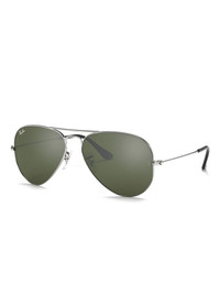 aviator-frame sunglasses Highlights - Silver-tone - Signature ray-ban aviator frame - Tinted lenses - Curved tips - Nose pads - These glasses come with a protective case. Made in Italy Composition Metal 90% SIZE & FIT Measurement Bridge Width 0.55 in(1.4 cm) Lens Diameter 2.44 in(6.2 cm) Total Width 5.7 in(14.5 cm) Arm Length 5.51 in(14 cm)
