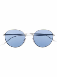 logo round frame sunglasses silver-tone metal logo plaque at the arm round frame blue tinted lenses These glasses come with a protective case. Imported Composition Metal 100% SIZE & FIT Measurement Arm Length 5.7 in(14.5 cm) Bridge Width 0.78 in(2 cm) Lens Diameter 1.96 in(5 cm) Total Width 5.27 in(13.4 cm)