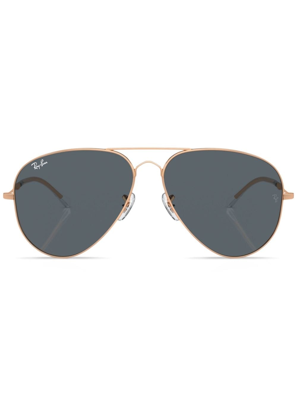 Old Aviator logo-engraved sunglasses Highlights - Rose gold - Metal - Polished finish - Logo-engraved arm - Grey tinted lenses - Signature ray-ban aviator frame - Nose pads - Straight arms - Curved tips - These glasses come with a protective case. Made in United States Composition Metal 100% SIZE & FIT Measurement Arm Length 5.7 in(14.5 cm) Bridge Width 0.55 in(1.4 cm) Lens Diameter 2.51 in(6.4 cm)