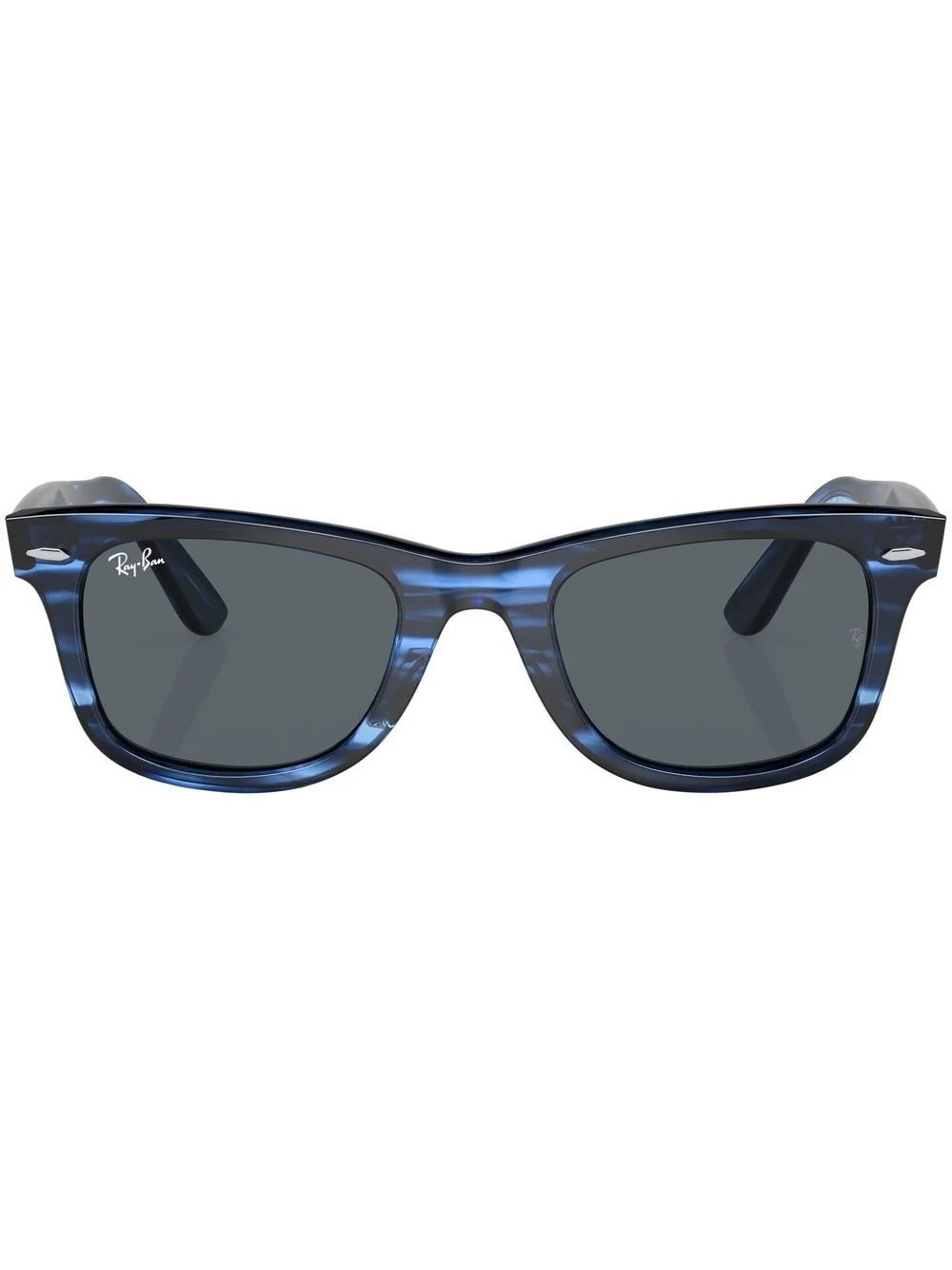 Original Wayfarer square-frame sunglasses blue acetate square frame tinted lenses UV-protective lenses lens decal horizontal stripe pattern logo plaque at the arm curved tips These glasses come with a protective case. Made in United States Composition Acetate 100%