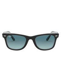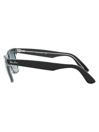 RB2140 Wayfarer Ease sunglasses Highlights - Transparent black acetate rb2140 wayfarer ease sunglasses from ray-ban featuring square frames, gradient lenses, a logo decal on the lens, straight arms with angled tips, a logo at the temple and polarised lenses. this item comes with a protective case. Made in Italy Composition Acetate 100% SIZE & FIT Measurement Arm Length 5.9 in(15 cm) Bridge Width 0.86 in(2.2 cm) Lens Diameter 1.96 in(5 cm)