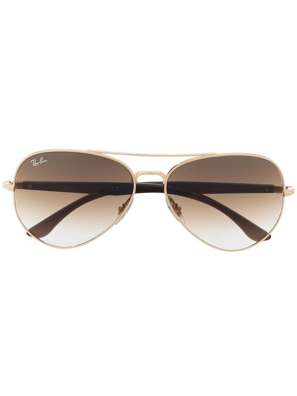 RB3675 aviator-frame sunglasses Taking inspiration from its signature pilot shape, Ray-Ban introduces the RB3675 sunglasses. Made from gold-tone steel, this pair is defined by the classic gradient lenses. Made in Italy Composition PVC 100% SIZE & FIT Measurement Arm Length 5.31 in(13.5 cm) Bridge Width 0.55 in(1.4 cm) LENGTH 5.51 in(14 cm) Lens Diameter 2.28 in(5.8 cm) WIDTH 5.51 in(14 cm)
