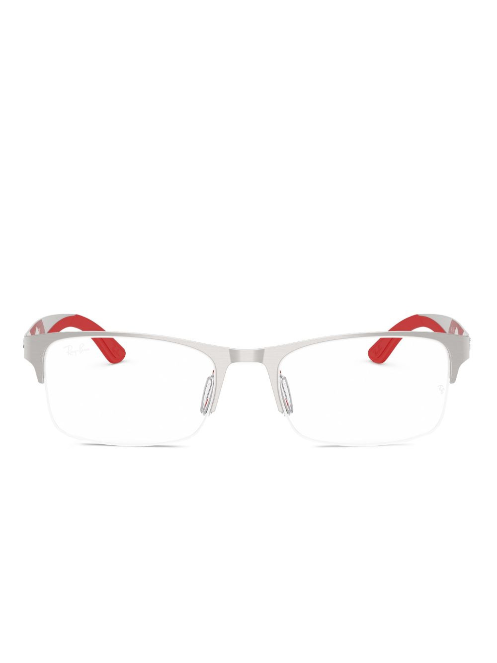 RB7551 rectangle glasses Highlights - Silver-tone - Rectangle frame - Nose pads - Red temple tips - All glasses from farfetch are sold as non-prescription frames. - These glasses come with a protective case. Made in Italy Composition Metal 100% SIZE & FIT Measurement Arm Length 5.7 in(14.5 cm) Bridge Width 0.74 in(1.9 cm) Lens Diameter 2.12 in(5.4 cm)