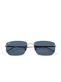 rimless rectangle sunglasses Highlights - Silver - Rectangle frame - Dark blue lenses - Rimless design - These glasses come with a protective case. Made in United States Composition Metal 100%, Acetate 100%