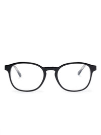 round-frame glasses Highlights - Black - Round frame - Clear lenses - Lens decal - Logo charm - Straight arms with curved tips - These glasses come with a protective case. - All glasses from farfetch are sold as non-prescription frames. Made in Italy Composition Acetate 100% SIZE & FIT Measurement Arm Length 5.86 in(14.9 cm) Bridge Width 0.74 in(1.9 cm) Lens Diameter 1.96 in(5 cm) Total Width 5.31 in(13.5 cm)