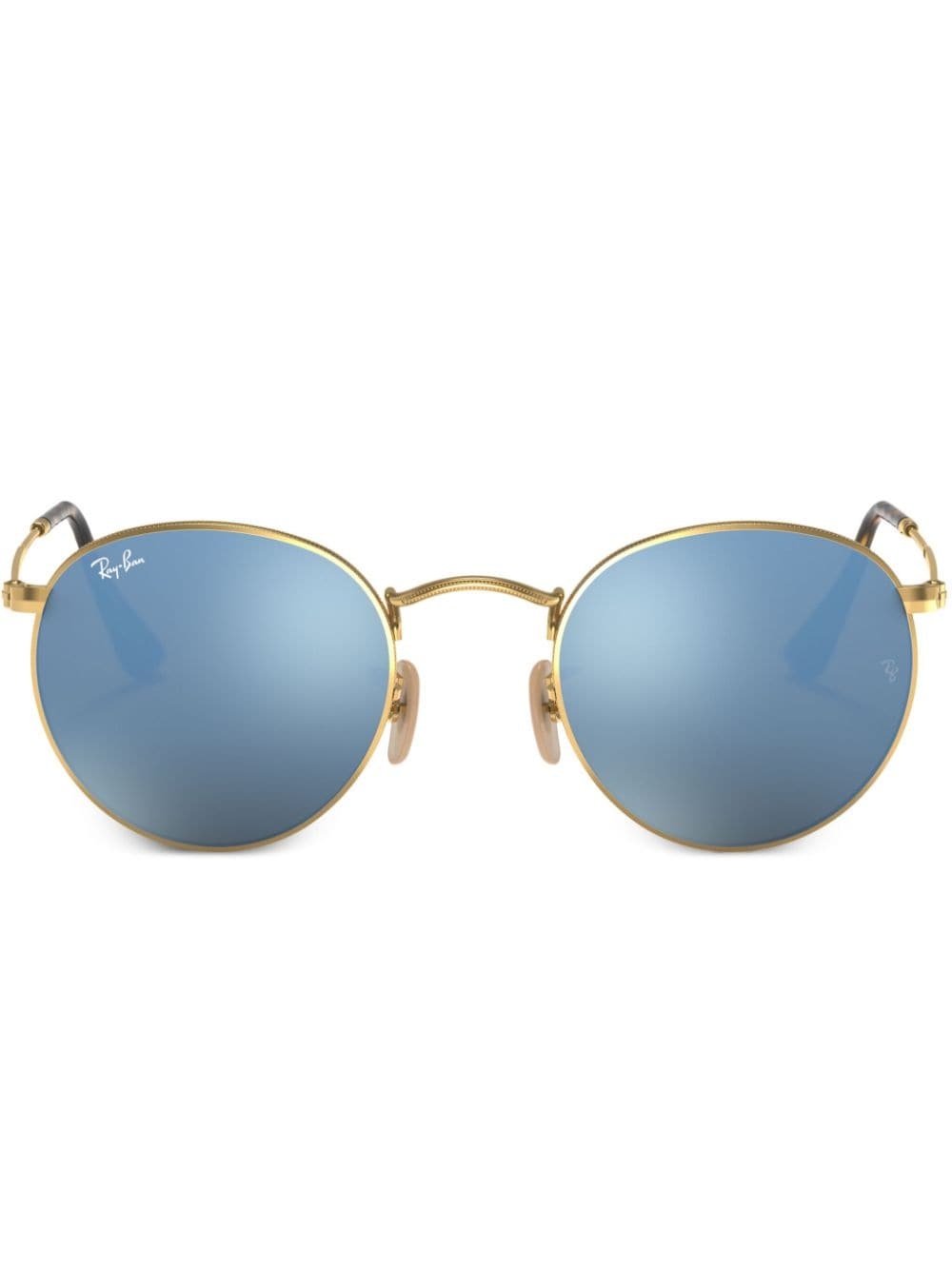 Round Titanium sunglasses Highlights - Gold-tone - Metal - Engraved logo - Round frame - Mirrored lenses - Uv-protective lenses - Nose pads - Straight arms - Curved tips - These glasses come with a protective case. Made in Italy Composition Metal 100% SIZE & FIT Measurement Bridge Width 0.82 in(2.1 cm) Lens Diameter 1.96 in(5 cm) Arm Length 5.7 in(14.5 cm)