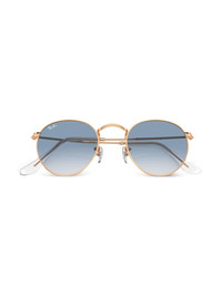 Round round-frame sunglasses Highlights - Rose gold - Metal - Round frame - Gradient lenses - Uv-protective lenses - Raised bridge - Nose pads - Straight arms - Curved tips - These glasses come with a protective case. Made in United States Composition Metal 100% SIZE & FIT Measurement Arm Length 5.7 in(14.5 cm) Bridge Width 0.82 in(2.1 cm) Lens Diameter 1.81 in(4.6 cm) Total Width 5 in(12.7 cm)