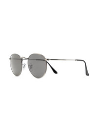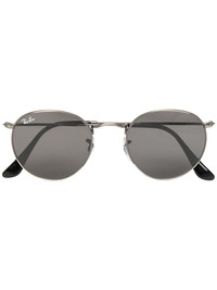 Round tinted sunglasses Here presented in a silver-tone colourway, Ray-Ban's Round sunglasses are inspired by the 1960s counter-culture when this style first originated. They're defined by the round crystal lenses, hence their designation. Highlights - Silver tone - Polished finish - Round frame - Grey tinted lenses - Straight arms - These glasses come with a protective case. Made in Italy Composition Steel 100%, PVC 100% SIZE & FIT Measurement Arm Length 5.7 in(14.5 cm) Bridge Width 0.82 in(2.1 cm) Lens Diameter 1.96 in(5 cm) Total Width 5.31 in(13.5 cm)