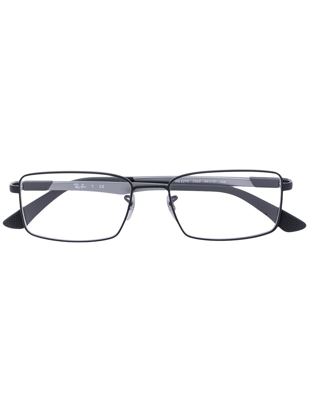 square glasses Black acetate and metal square glasses from Ray Ban. Made in Italy Composition Metal 80%, Acetate 20% SIZE & FIT Measurement Bridge Width 0.66 in(1.7 cm) Lens Diameter 2.12 in(5.4 cm) Total Width 4.72 in(12 cm) Arm Length 5.7 in(14.5 cm) Washing instructions LUXOTTICA