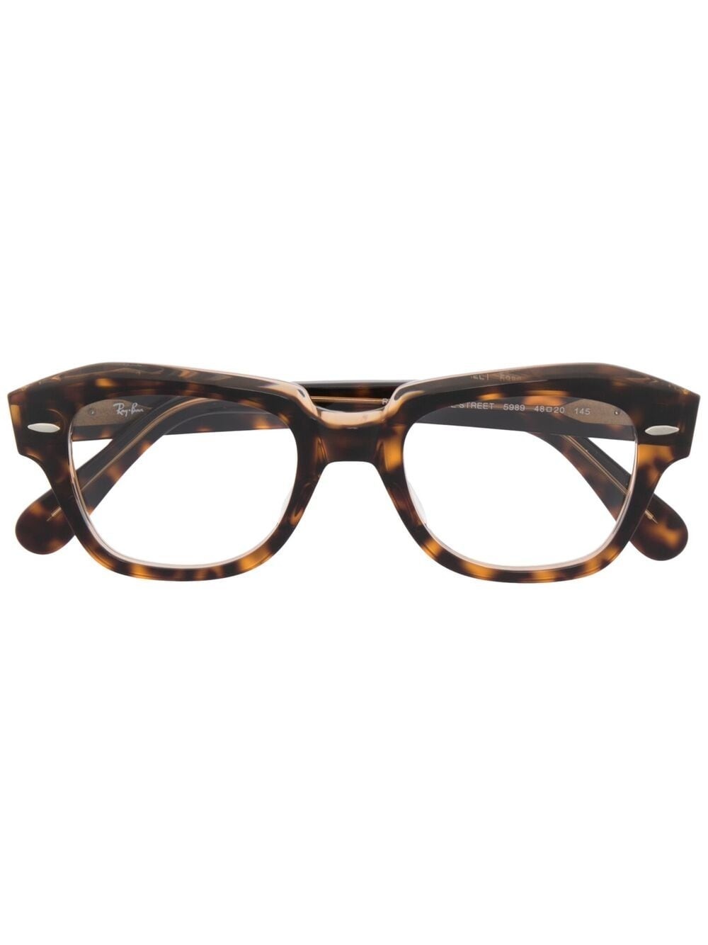 State Street glasses brown tortoiseshell effect angular design logo-debossed arm Don't be short-sighted. All glasses from FARFETCH are sold as non-prescription frames. We know you'll look after them, but these glasses come with protection, just in case. Made in Italy Composition Acetate 100% SIZE & FIT Measurement Arm Length 5.7 in(14.5 cm) Bridge Width 0.78 in(2 cm) Lens Diameter 1.88 in(4.8 cm) Total Width 5.9 in(15 cm)