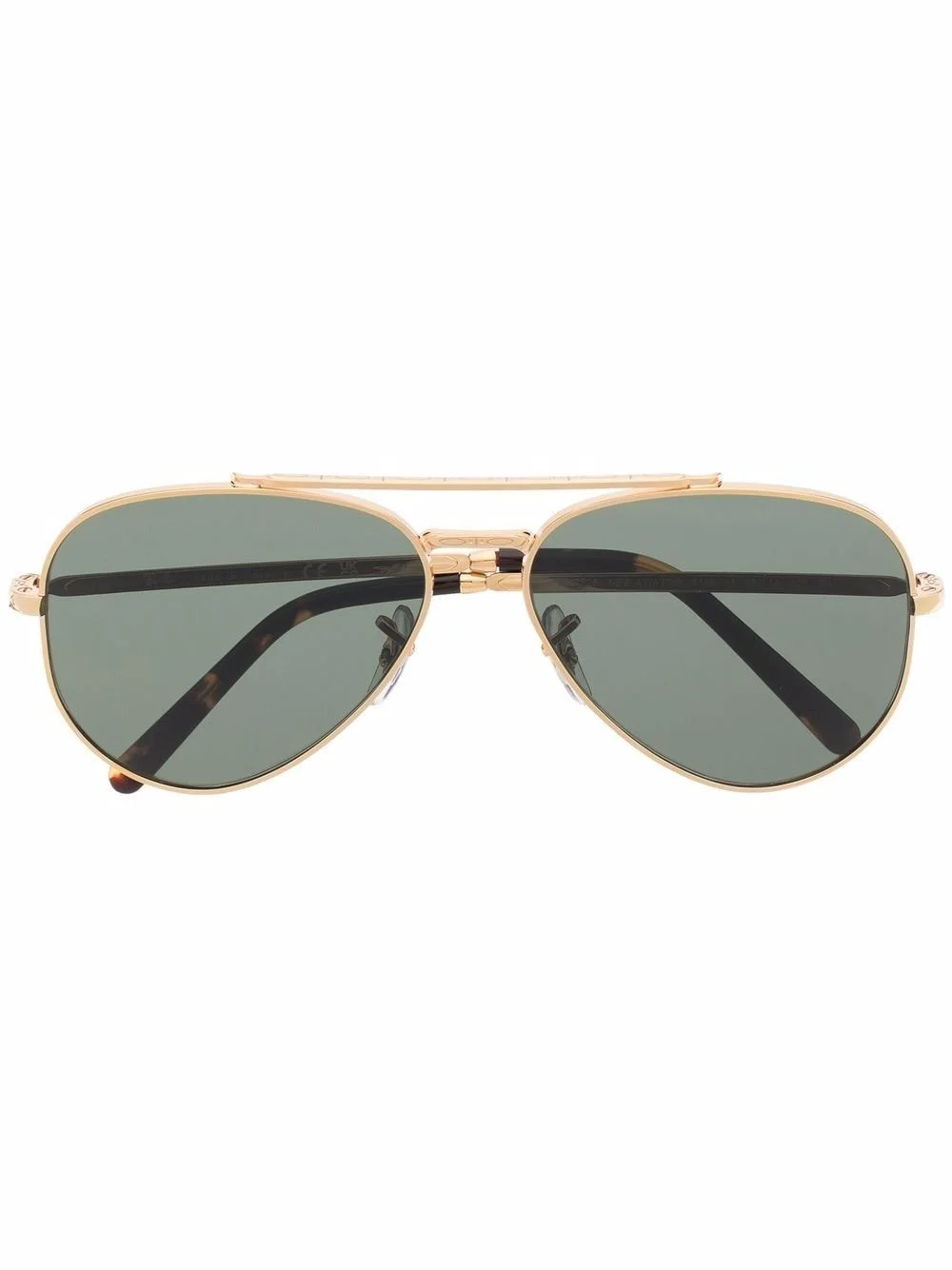 tinted aviator sunglasses Ray Ban's philosophy for timeless designs has never been more evident than with these classic aviator frame sunglasses, with a gold-tone trim, engraved design at the arms and dark tinted lenses. Made in Italy Composition Metal (Other) 100% SIZE & FIT Measurement Arm Length 5.31 in(13.5 cm) Bridge Width 0.55 in(1.4 cm) Lens Diameter 2.28 in(5.8 cm) Total Width 5.7 in(14.5 cm)