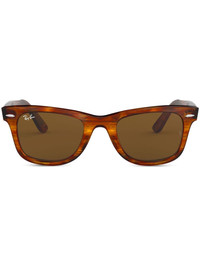 Wayfarer sunglasses brown acetate tortoiseshell effect square frame brown tinted lenses straight arms We know you'll look after them, but these glasses come with protection, just in case. Imported Composition Acetate 100% SIZE & FIT Measurement Arm Length 5.7 in(14.5 cm) Bridge Width 0.86 in(2.2 cm) Lens Diameter 2.04 in(5.2 cm)